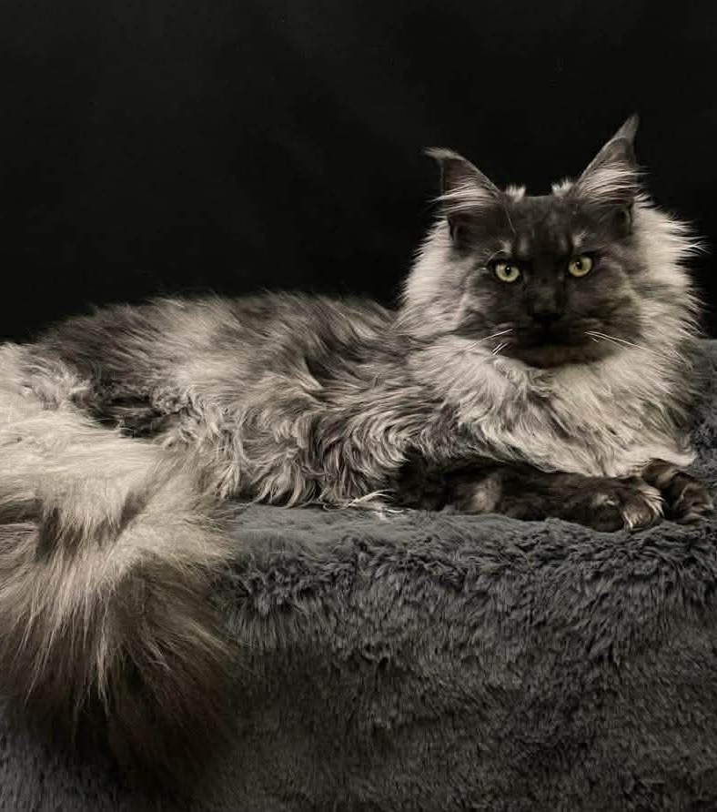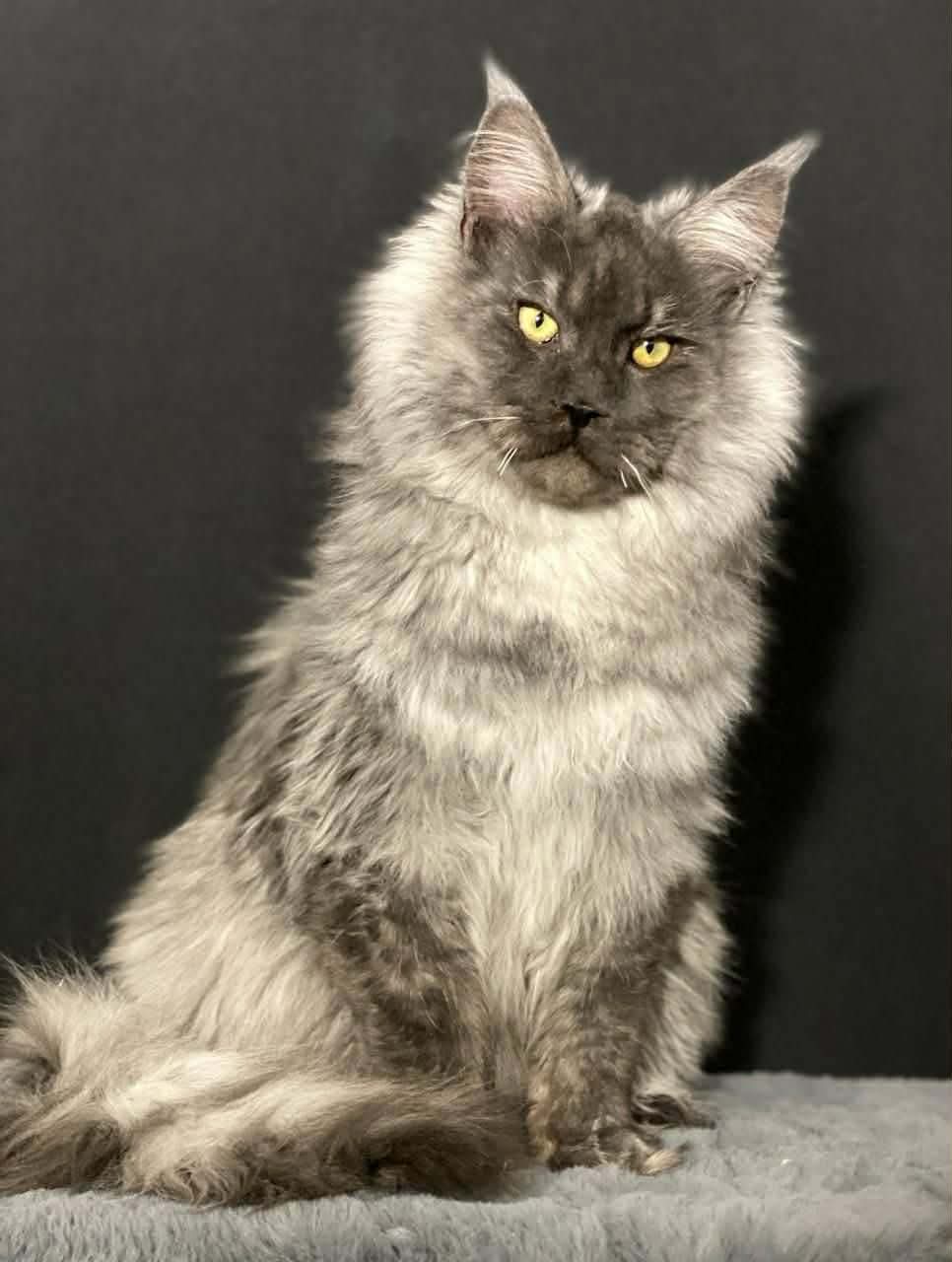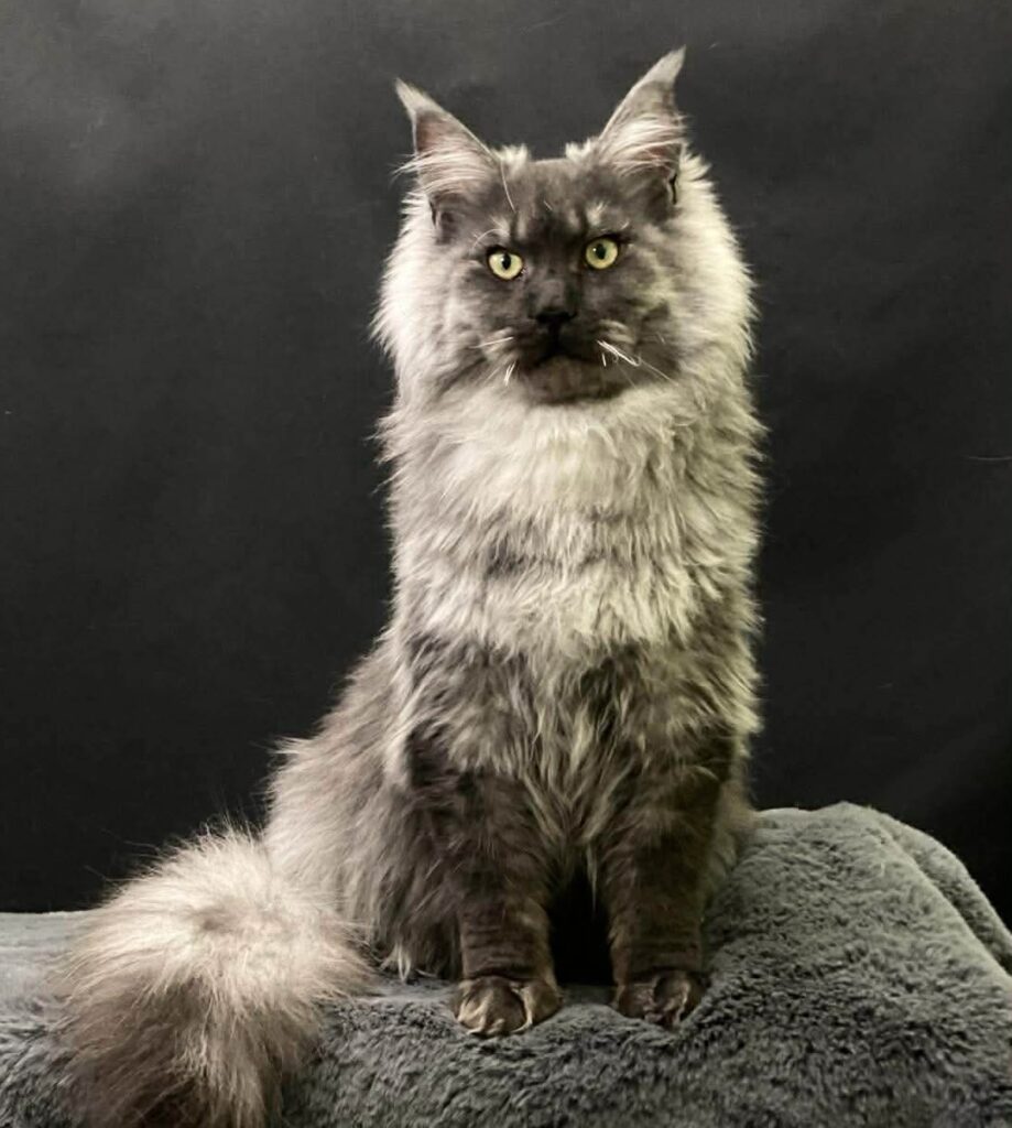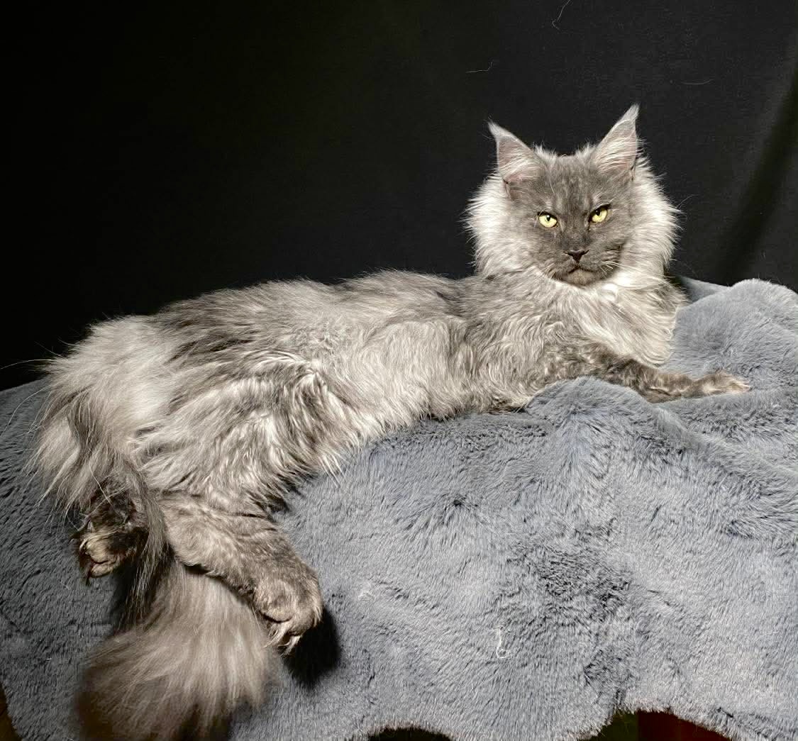Introducing Huxley! I always said I would have black smoke kittens if I could find a black smoke stud with great hips, and I finally have. Huxley is more of a quiet boy, but he enjoys being brushed, is kind to the other kitties, and he’s big! He’s nearing 20 pounds and will turn 1 in a few months which is cool because it’s hard to find larger cats with great hips.