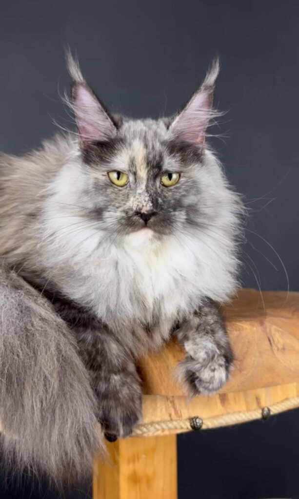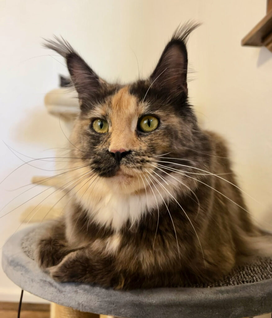 Due June 13, 2026. Tris is a blue torbie and Bear is poly. They’ve both got amazing muzzles and long ear tufts which I’m hoping their kittens will inherit. Possible colors include blue and cream tabbies, black and red tabbies, possibly blue or black solid, and torties and torbies.